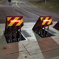 Delta Scientific’s electric HD2055 modular shallow foundation barricade is tested to ASTM M50/P1 with negative penetration from the vehicle upon impact. With a shallow foundation of only 24 inches, the HD2055 can be installed without worrying about buried power lines and other below grade obstructions. The modular make-up of the barrier also allows you to cover wider roadways by adding additional modules to the system. The HD2055 boasts an Emergency Fast Operation of 1.5 seconds giving the guard ample time to deploy under a high threat situation.